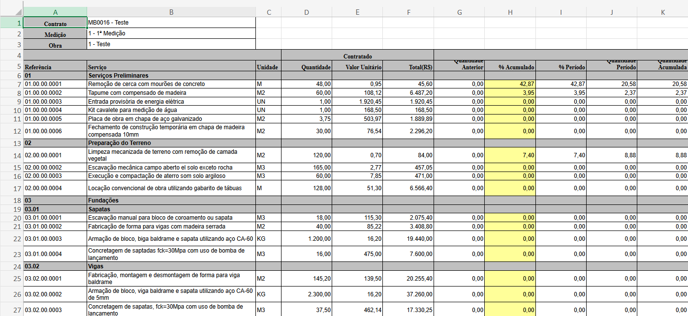 Esta ação irá trazer a planilha editada para o sistema, dando mais praticidade e agilidade no preenchimento das quantidades medidas.